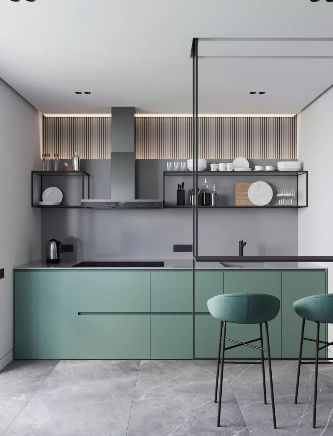 不論是大宅也好,小戶型空間也罷,現(xiàn)在大多都會(huì)選擇盡可能多的開放式格局,因?yàn)樵絹碓蕉嗟娜税l(fā)現(xiàn)——“房間其實(shí)不是越多越好”。每個(gè)功能區(qū)之間可以通過不同色系、材質(zhì)進(jìn)行自然的過渡,或者在固定的隔斷墻上使用鏤空隔斷或玻璃隔斷,使空間更加通透明亮,家居場景渾然一體,家的氛圍感更加濃郁。