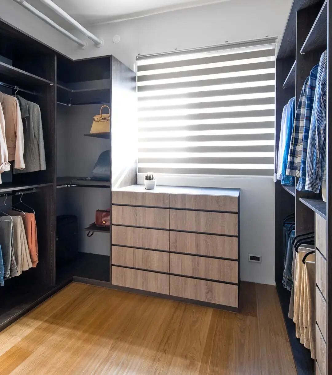 2,把北面的一間房改成了整體衣帽間+儲(chǔ)藏室。