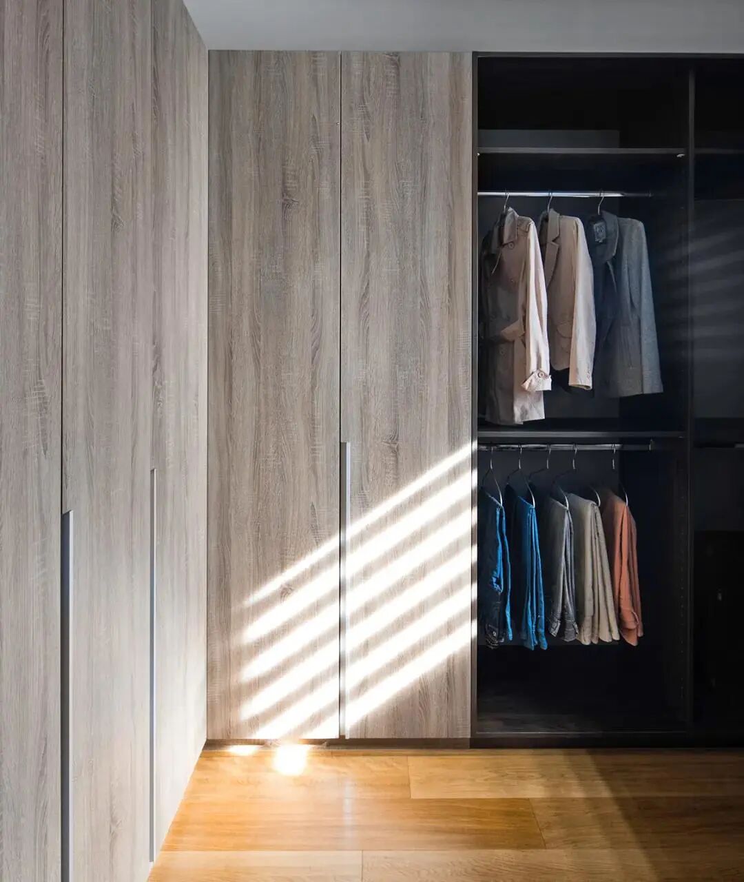 你會(huì)發(fā)現(xiàn)在規(guī)劃上,它特地做了開放式和封閉式兩種規(guī)格。開放這側(cè)主要是為了放置睡衣和部分隔夜衣。